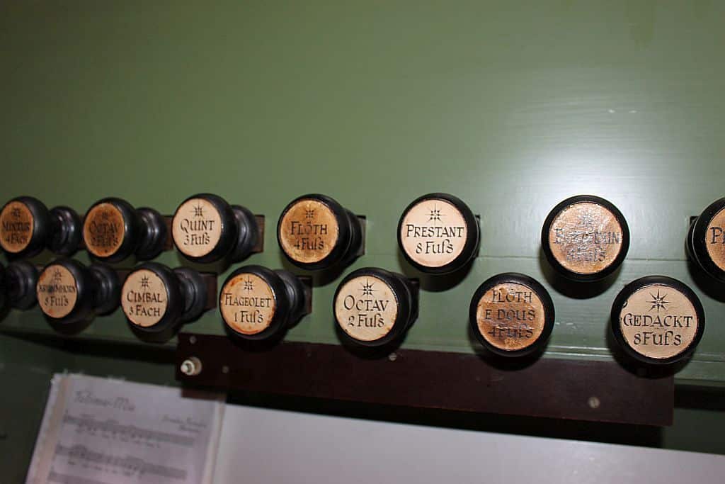 | Mixtur 4 fach (Hoofdwerk) | C: 1 1/3′ – 1′ – 2/3′ – 1/2′. f°: 2 2/3′ – 2′ – 1 1/3′ – 2/3′. b’: 5 1/3′ – 4′ – 2 2/3′ – 1′. |