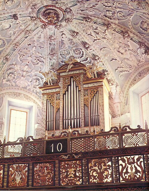 Manuaal: CDEFGA – c3 Principal 8′, Coppel 8′, Octav 4′, Spitzflët 4′, Quint 2 2/3′, Octav 2′, Quint 1 1/3′, Mixtur 3 fach, Cimbal 2 fach.