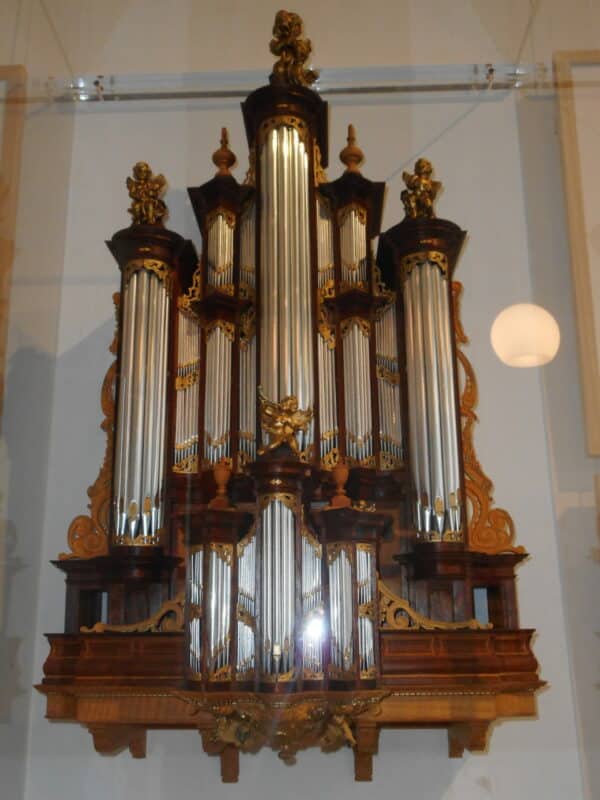 Rugwerk: C-d3 Quintadeen 16′, Prestant 8′, Holpijp 8′, Octaaf 4′, Roorfluyt 4′, Nasart 3′, Octaaf 2′, Terts 1 3/5′, Mixtuur III-IV-VI-VIII sterk, Cornet VI sterk (discant), Trompet 8′, Hautbois 8′, Tramblant.