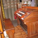 | Hoofdwerk: (C-f3) Bourdon 16 Principal 8 Gedackt 8 Gamba 8 Oktave 4 Rohrflöte 4 Oktave 2 Sifflet 1 Mixtur 4f 2 2/3 Trompete 8Trede Ad Libitum (= vrije comb.) Trede Tutti; oplosser Koppelingen: Manualcoppel, Pedal – Manual I. |