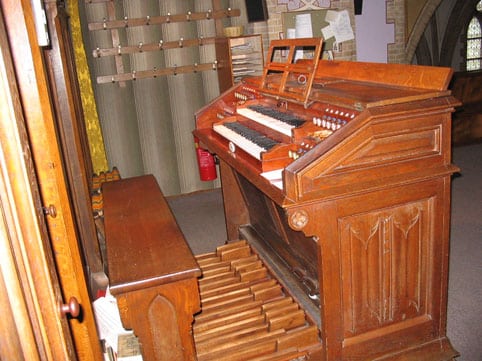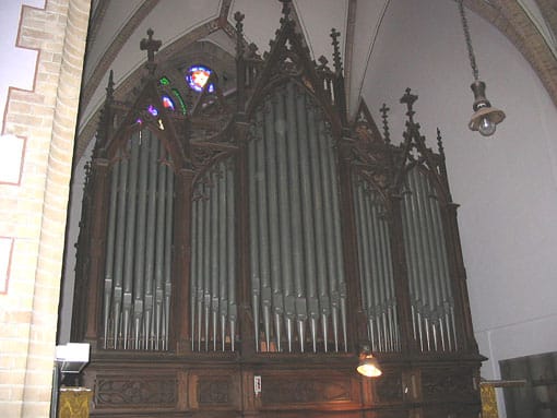 Nevenwerk: (C-f3) Geigenprincipal 8 Lieblich Gedackt 8 Flauto Amabile 8 Aeoline 8 Flûte Harmonique 4 Quint 2 2/3 Gemshorn 2Pedal: (C-d1) Subbass 16 Violon 16 Oktavbass 8 Melofoon 4 Posaune 16 |