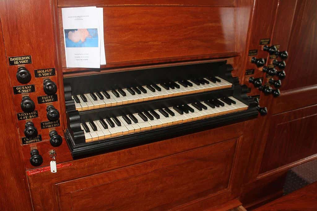 Onderpositief: C – g3 Roerfluit 8′, Viola da Gamba 8′, Flûte d’Amour 4′, Prestant 4′, Woudfluit 2′.