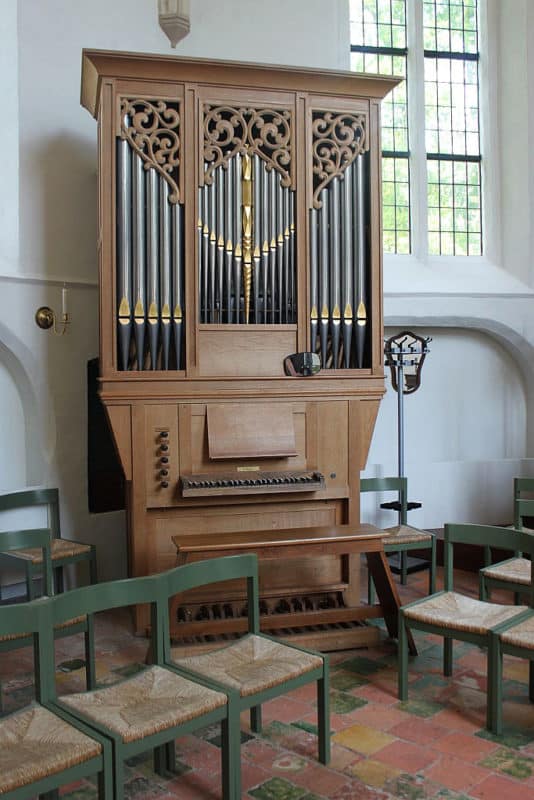 MANUAAL (C – f3) 54 TOETSEN: Gedekt 8′, Prestant 4′, Fluit 4′, Octaaf 2′, Mixtuur II-III sterk.
