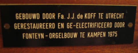 De dispositie van het De Koff-orgel: (1927; wijzigingen Fonteijn 1975)