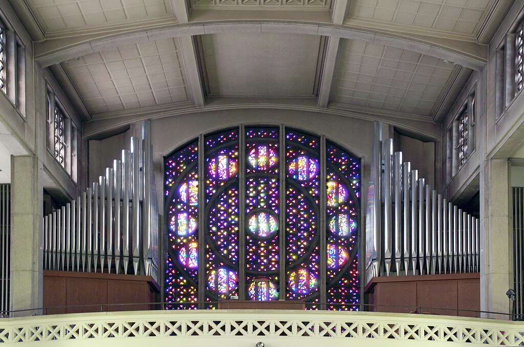 Oorspronkelijk stond er in de Römisch-Katholische Kirche Dreikönigen Zürich (Enge) Zürich, Zwitserland, een elektronium. Op 27 maart 1960 werd een pijporgel ingewijd dat gebouwd werd door Orgelbau Kuhn AG uit Männedorf. Net als de kerk in Dübendorf werd het orgel vanwege een rozetraam in 2 delen opgesteld. Het sleepladen-orgel heeft elektrische tractuur, 34 stemmen, 3 manualen en een vrij pedaal. Eén unit-register en 3 transmissies.
