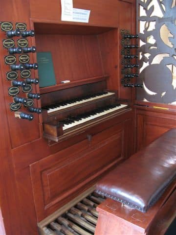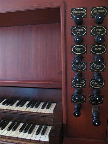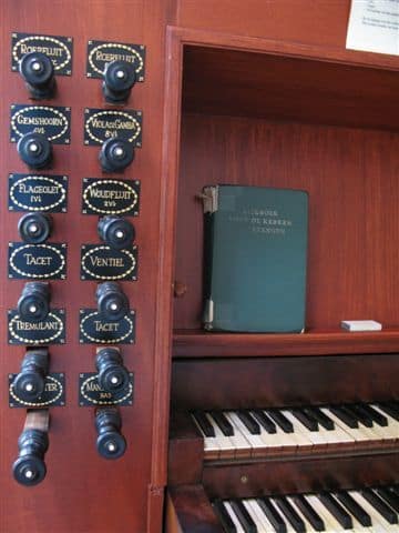 HOOFDWERK (C – f3) 54 TOETSEN: Bourdon 16′, Praestant 8′, Holpijp 8′, Octaaf 4′, Fluit 4′ – 1996, Quint 3′, Octaaf 2′, Dulciaan 8′.