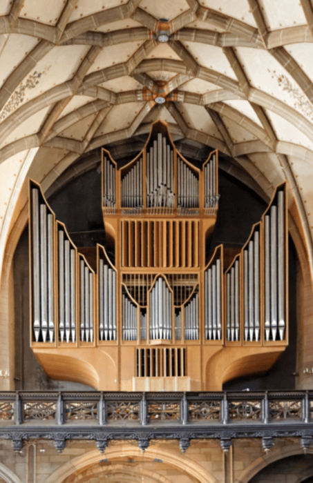 KOPPELINGEN: Hauptwerk – Oberwerk, Hauptwerk – Brustwerk, Hauptwerk – Schwellwerk, Oberwerk – Brustwerk, Oberwerk – Schwellwerk, Brustwerk – Schwellwerk, Pedal – Hauptwerk, Pedal – Oberwerk, Pedal – Brustwerk, Pedal – Schwellwerk.