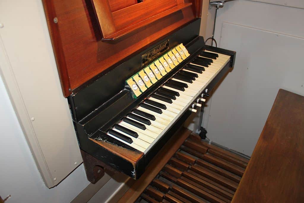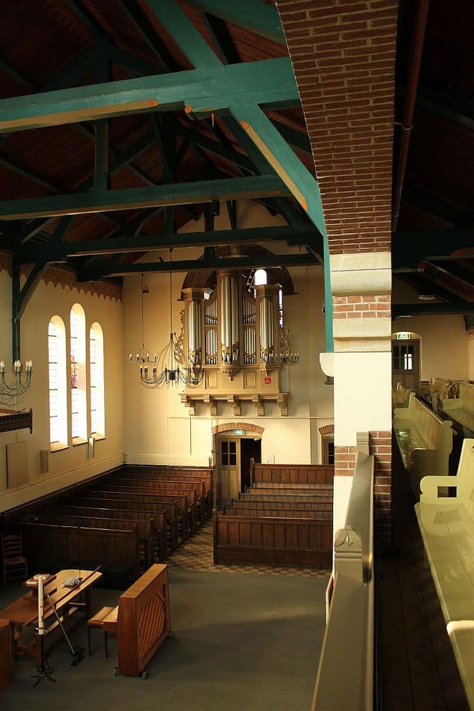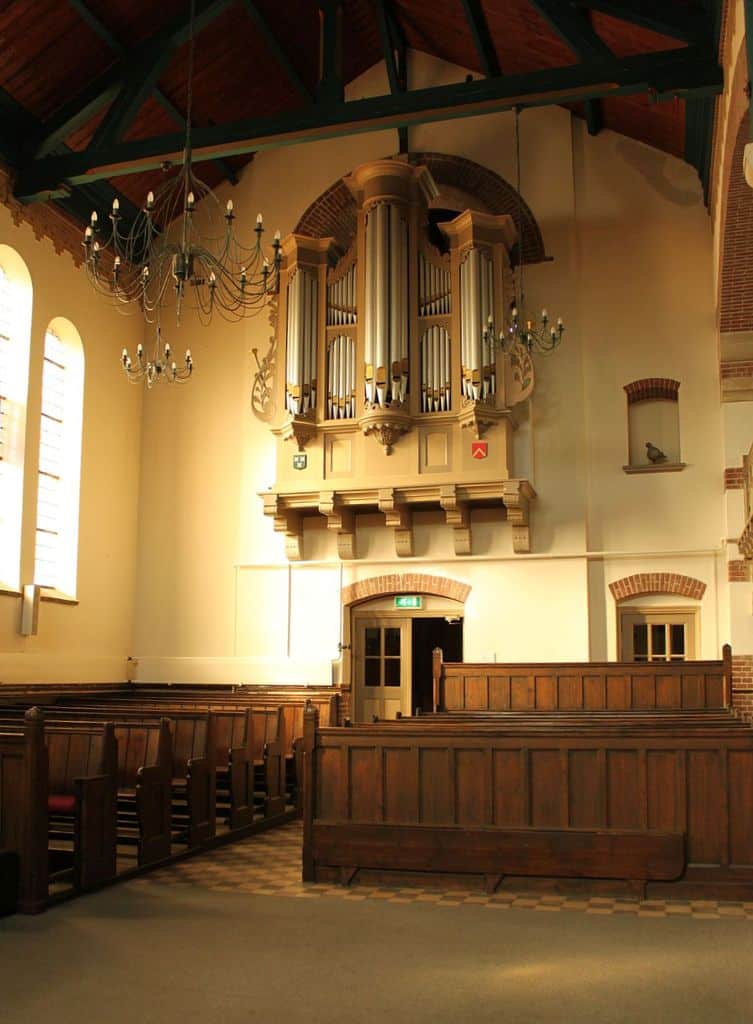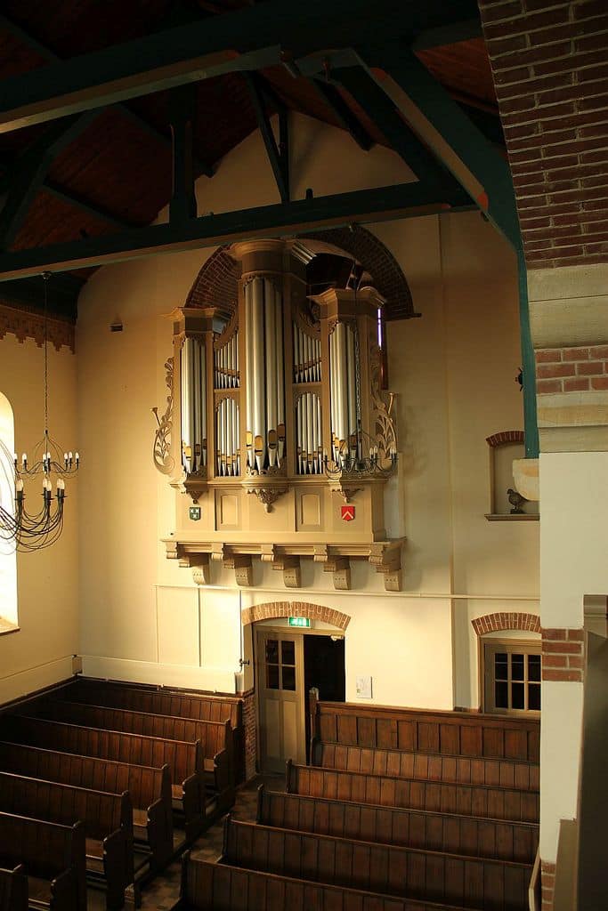 Manuaal: C – f3 Bourdon 16′, Prestant 8′, Roerfluit 8′, Viola di Gamba 8′, Voix Celeste 8′, Octaaf 4′, Woudfluit 2′, Mixtuur IV sterk.