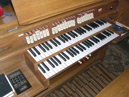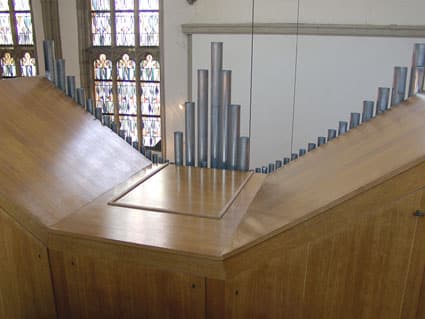 | Hauptwerk: (C-g3) Prinzipal 8 Gemshorn 8 Oktave 4 Rohrflöte 4 Waldflöte 2 Mixtur 4-6f 1 1/3 Holzdulcian 16 Tremulant |